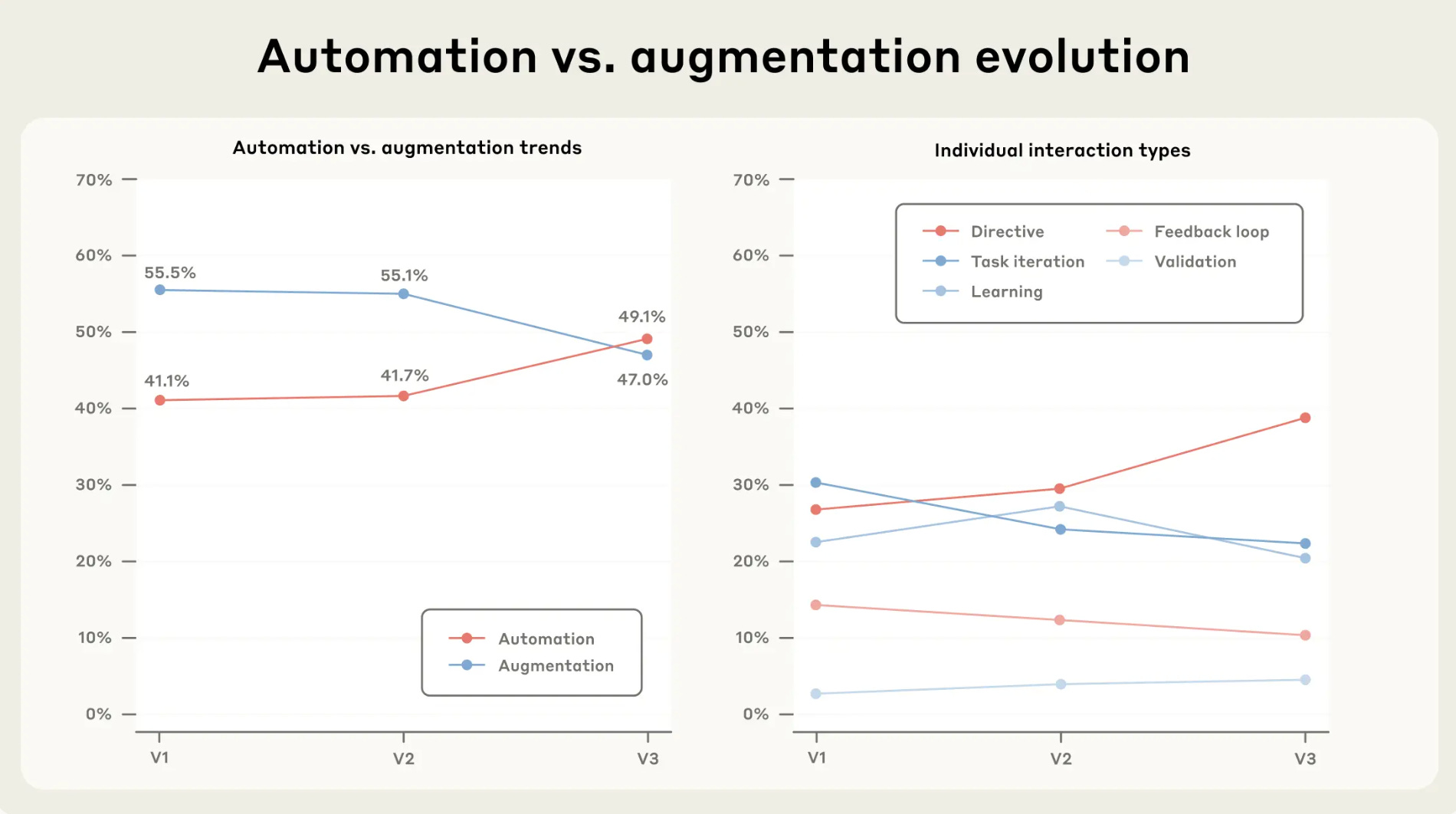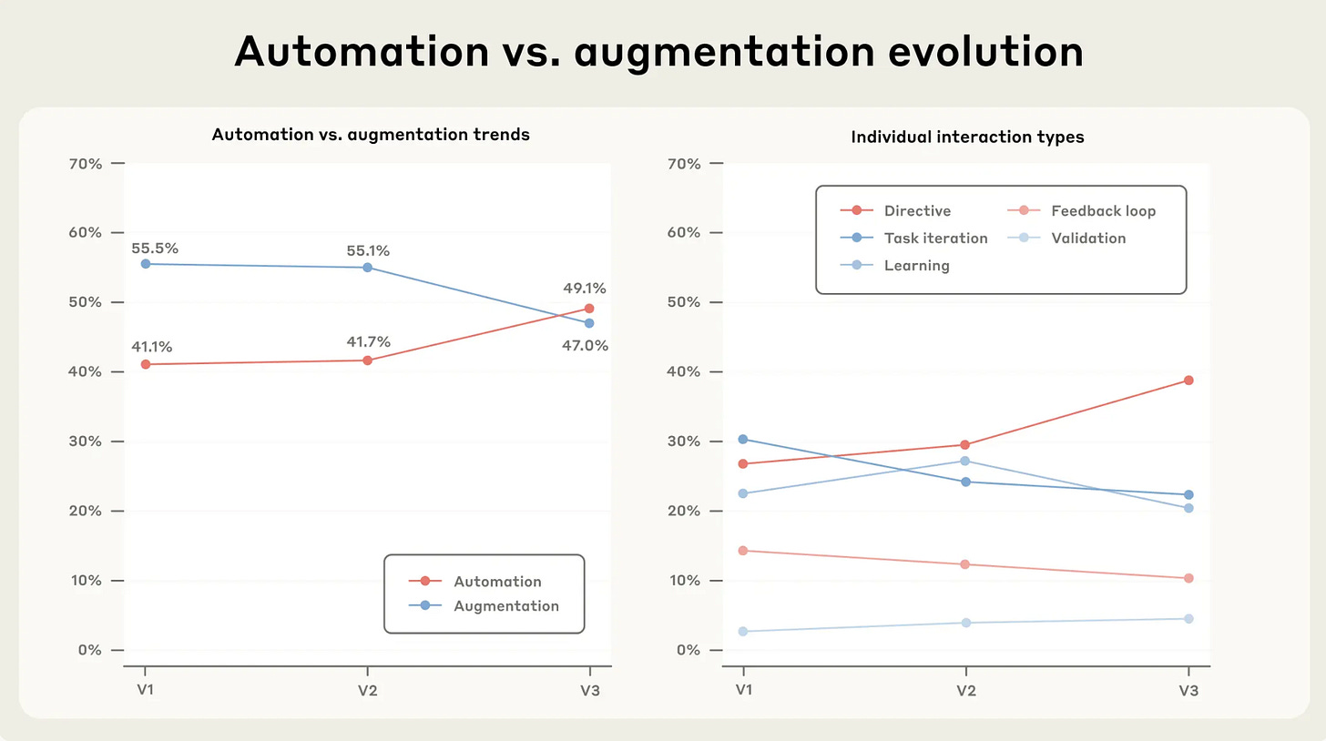 First of two reports from two of the leading providers of frontier models, trying to answer the question, how are people using AI? Anthropic come out with an interactive website examining 1 million Claude conversations revealing some interesting trends, probably most pertinent being an increase in automation tasks, relative to information / research tasks. This tracks with increased confidence in users ‘delegating the work’ to AI, whilst also reflecting improvements in model capability. Credit to Anthropic for not shying away from the implications of this - job displacement is a logical mid point if not end point for this trend. Must read folks.