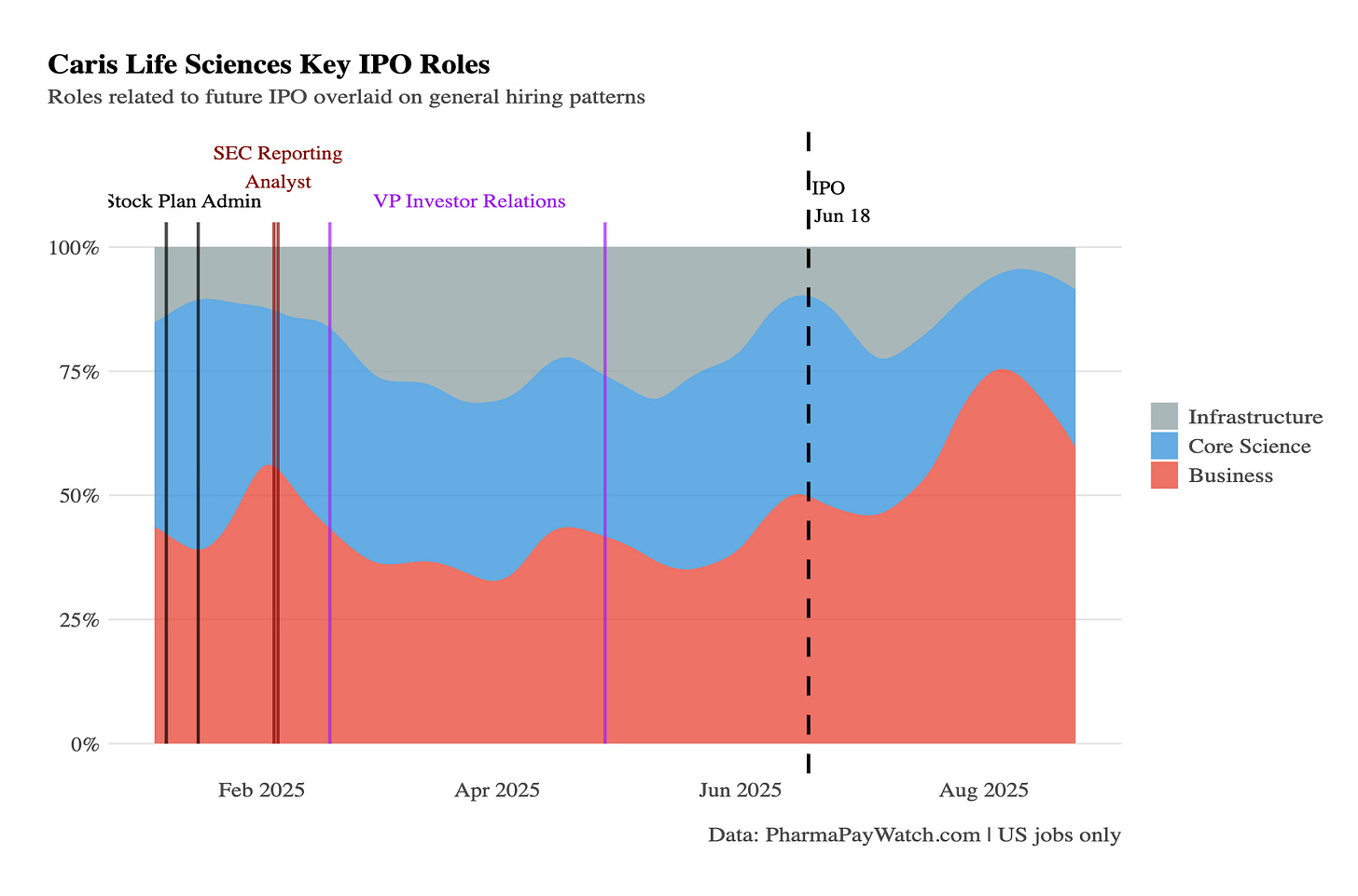 Interesting post tracking job posting data over time for a company who went onto to IPO. The distribution of roles - and the appearance of certain job titles - are leading indicators for the actions of the executive of a business. Important market intelligence for investors, recruiters alike.