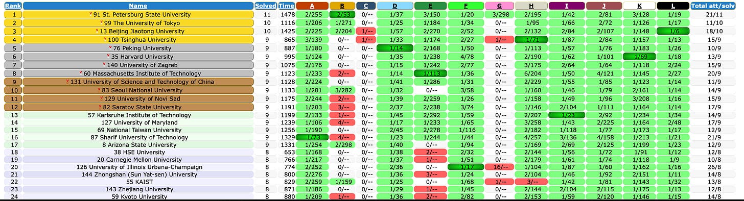 You know what, if you can’t compete with $100 million offers then why not pick from the tree? The ICPC results are out, a global programming competition sponsored by OpenAI, Huawei and other big tech big beast to see which university has the best programmers. Handy one pager which you can scrape and load into a boolean search string…