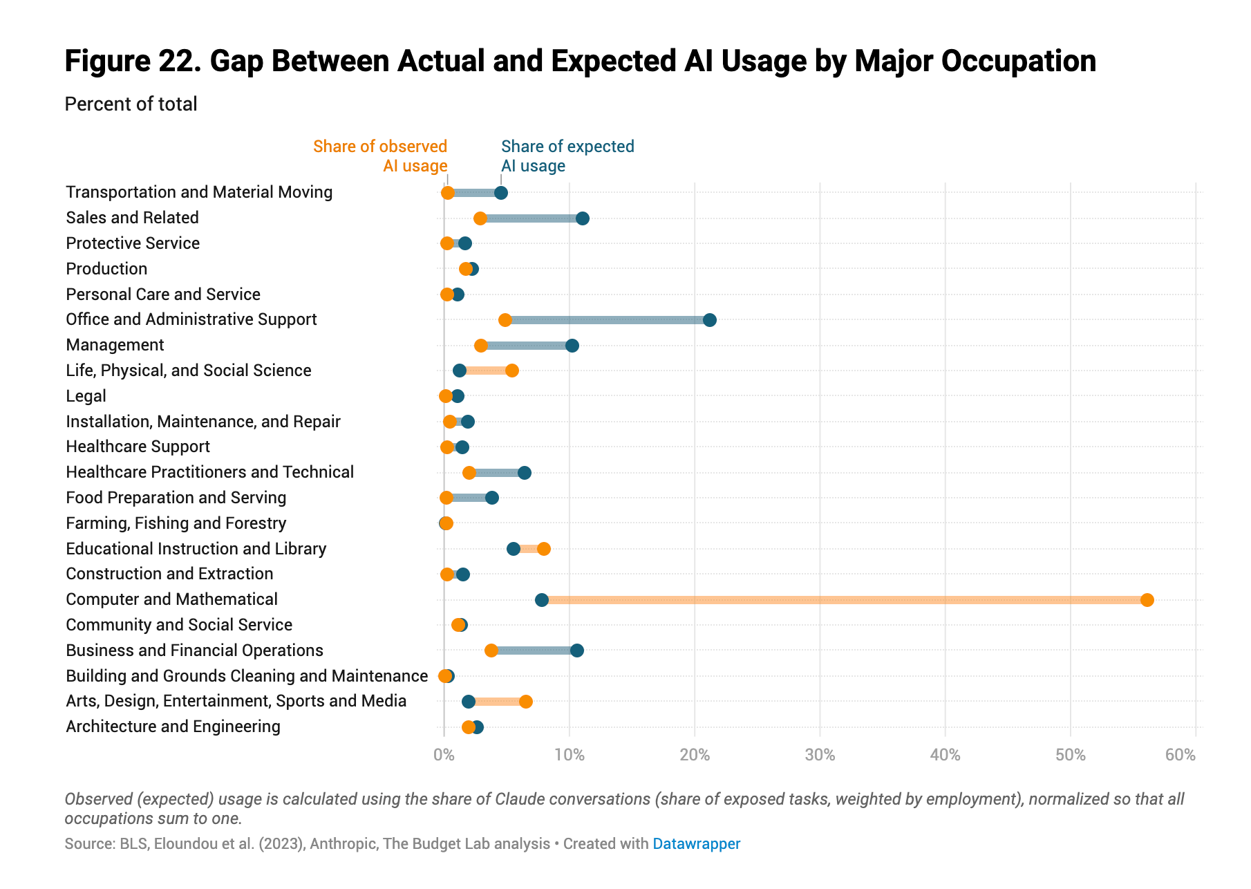 It’s strange to take optimism from a refutation so this article lands rather strangely; however, it is an important read as it challenges the narrative that AI is already having an impact in employment, mainly by examining the rate of occupational change in sectors highly exposed to or by AI. The tentative conclusion (shouldn’t all conclusions be tentative by now?) is that whilst unemployment has risen, AI is not the direct cause. H/T to brainfooder Belinda Johnson for the share. Follow Belinda btw, she is great source for labour economics.